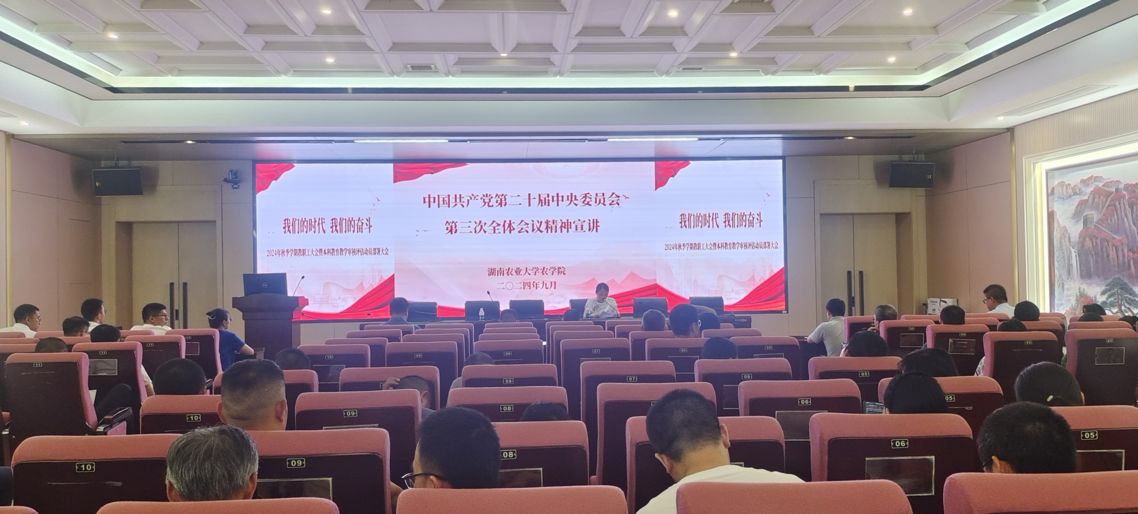 本网讯(农学院 李林艳)9月6日下午,农学院召开全院教职工大会,学习贯彻党的二十届三中全会精神,学习领会《中共中央 国务院关于弘扬教育家精神加强新时代高素质专业化教师队伍建设的意见》(以下简称《意见》),部署新学期学院教育教学工作,院党委书记刘敏主持。