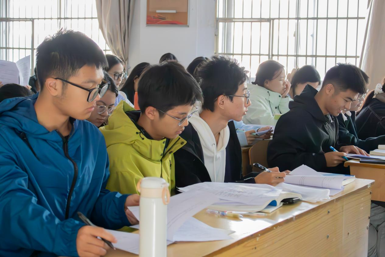 随后,钟颖结合历年考题和作业中的典型例题,逐步拆解解题思路,强调易错点与答题技巧。大家在台下认真演算、积极互动,不少同学露出恍然大悟的表情,仿佛在迷雾中找到了方向。