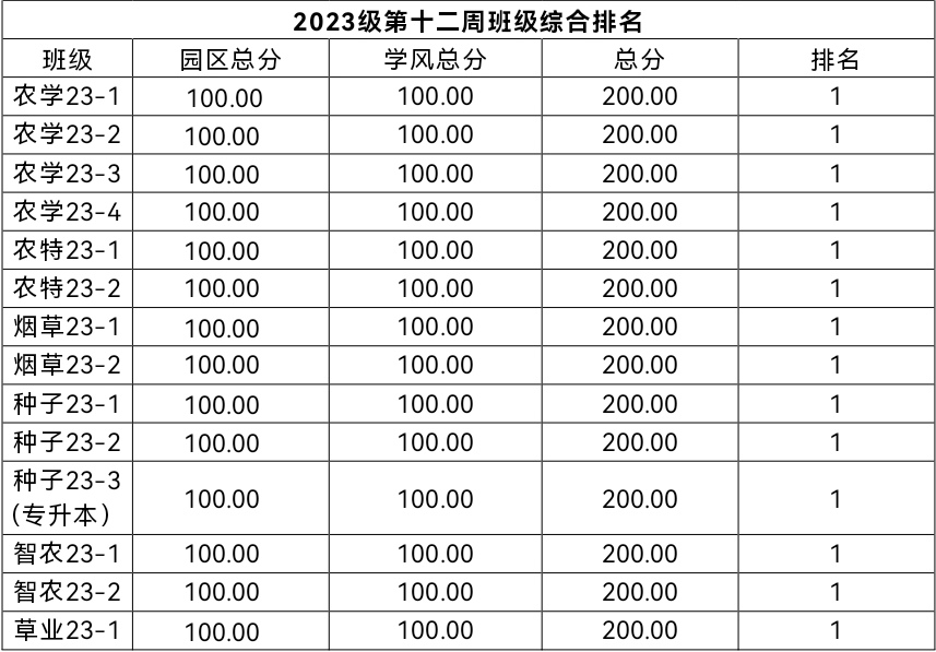 Part 3 | 第十二周班级综合排名