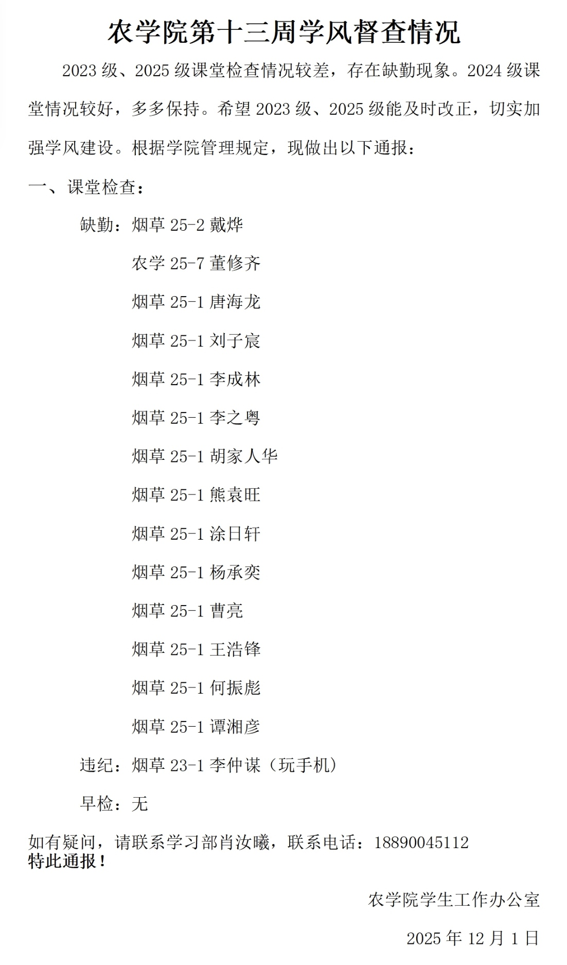 Part 1 | 第十三周学风建设情况