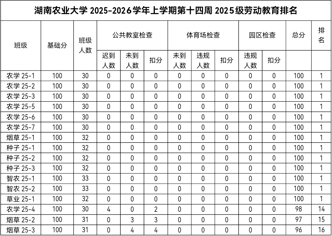 Part 4 | 第十四周劳动教育排名