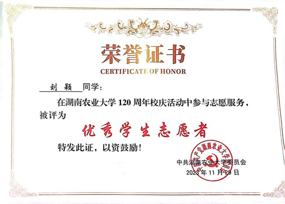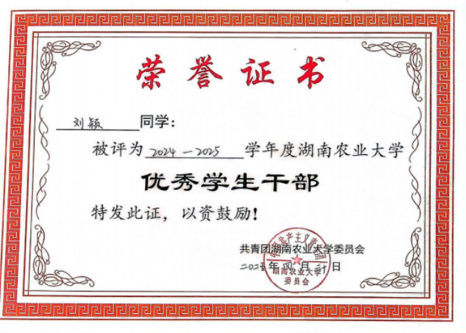 大家好,我是2022级烟草一班的刘颖,来自湖南邵阳,现已成为一名中共党员。我平时热爱运动,也积极参与各类实践活动,现已成功推免至东北农业大学。