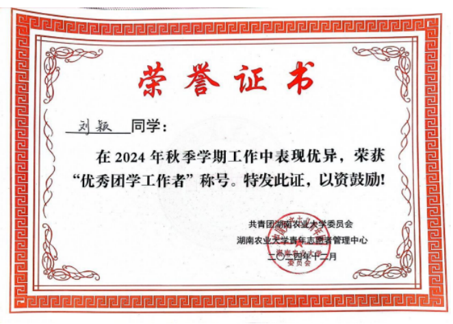 2024年秋季学期“优秀团学工作者”