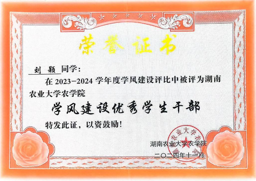 2024-2025学年3044am永利集团官网农学院学风建设优秀学生干部