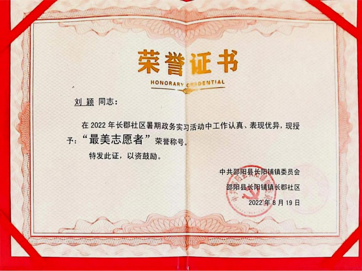 2022年社区政务实习“最美志愿者”