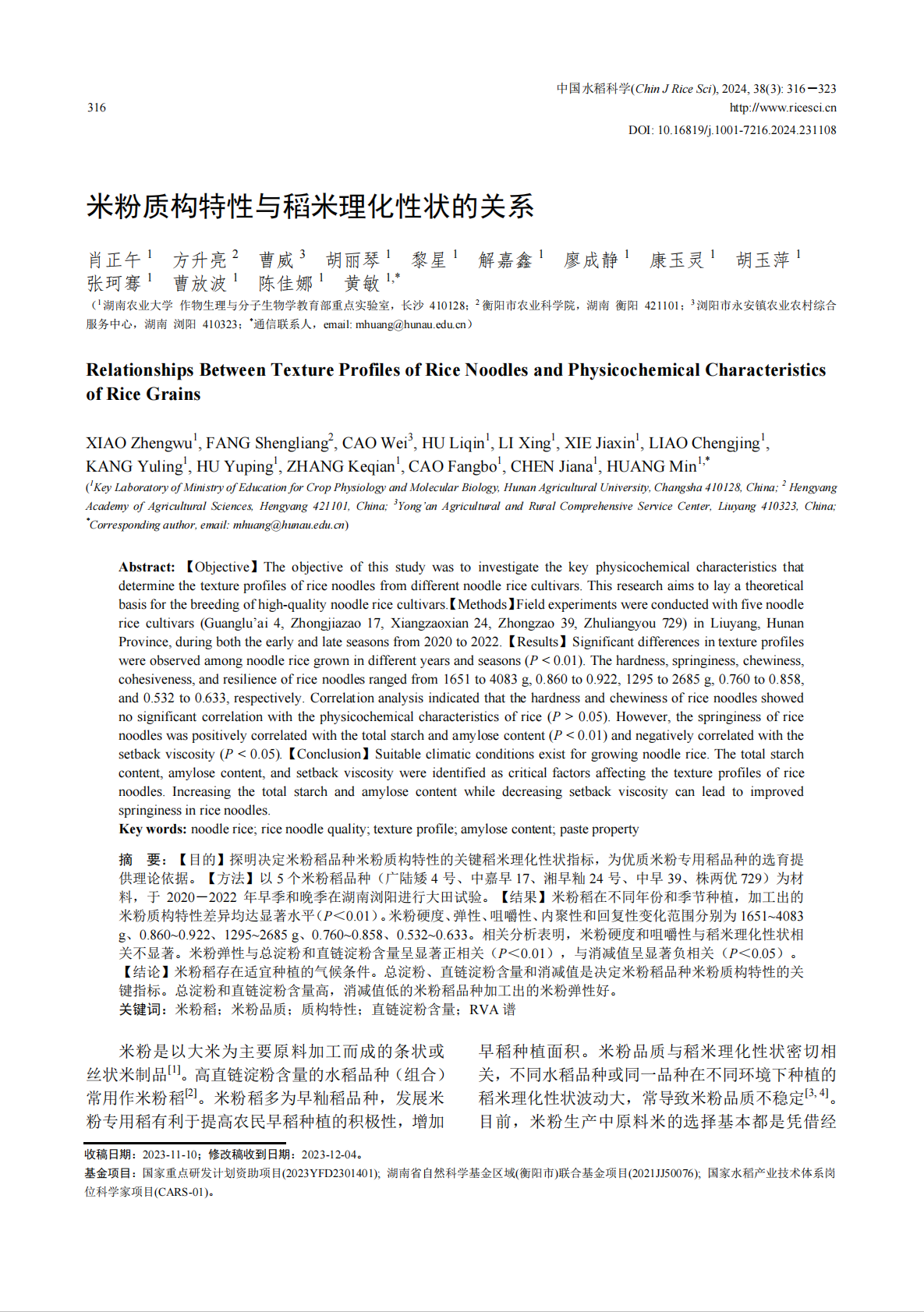 7. 肖正午, 黄敏. 鲜湿米粉品质及其影响因素. 中国稻米, 2022, 28(3): 34–41.
