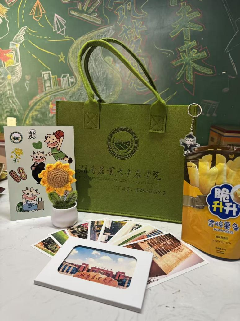 农学院筹备了“考研加油包”,选用了象征着农学院的绿色元素来设计考研加油包,正面有着袁隆平院士的谆谆嘱托,背面有着农学院全体教职工对同学们的殷切期盼,这一个个袋子装着寓意着顺利升入理想院校的脆升升,也装着寄托一举夺魁美好希冀的向日葵摆件,还装着印有农学院吉祥物禾禾形象的钥匙扣和贴纸,更有来自学弟学妹们对各位同学的祝愿。每一份物件都蕴含学院的用心,每一句祝福都承载着对学子们的殷切期盼,愿大家带着这份温暖与力量,从容奔赴考场,不负长久拼搏。