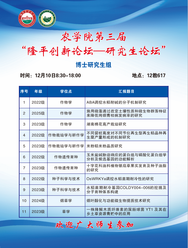 农学院第三届“隆平创新论坛—研究生论坛”—博士研究生组
